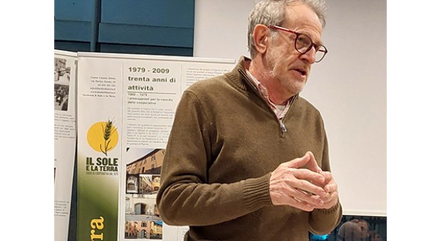 "Dal seme piantato da un piccolo gruppo di attivisti sociali nel lontano 1979, si è sviluppata una pianta che dopo vari travasi e spostamenti di sede è ora divenuta rigogliosa, fiorita e fruttificata”. È con una metafora botanica che Claudio Merati, presidente della cooperativa Il Sole e la Terra di Curno, al termine del suo mandato, sceglie di raccontare la crescita e continua rifioritura dell’attività nata da un gruppo d’acquisto e poi divenuta negli anni una cooperativa strutturata e fiore all’occhiello dell’economia sociale solidale bergamasca e della promozione di prodotti biologici.