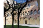 Adiacenti a questi edifici, i due chiostri su cui si affacciano architetture storiche di pregio, come il prospetto laterale della Chiesa di S. Spirito e la facciata quattrocentesca in mattoni dell’ex Archivio di Stato.
