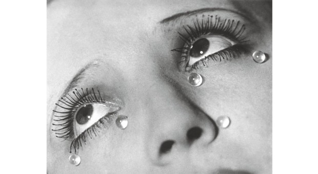 - “Lacrime”, o “Lacrime di vetro” è un famoso scatto di Man Ray del 1932, inizialmente realizzato per la pubblicità di un mascara. Per questa foto ha posato la modella e ballerina di cancan, Lydie, con delle gocce di glicerina attaccate sul viso. L’artista, dopo aver scattato diverse fotografie dell’intero volto, le ha ingrandite in camera oscura e infine ha isolato un singolo occhio impreziosito dalle lacrime luminose.